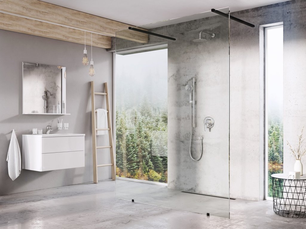 Sprchový kout Walk-In Free je dodáván ve složení: jedna pevná skleněná stěna v jednom balení.