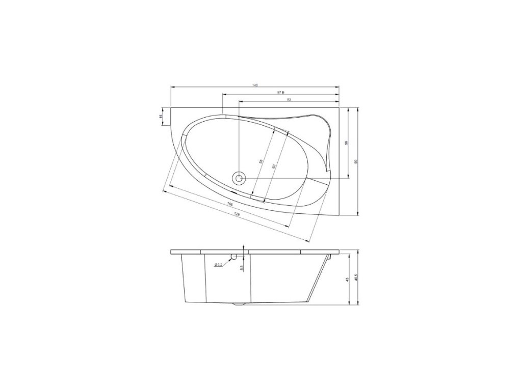 Rozměr vany: 140x90 cm