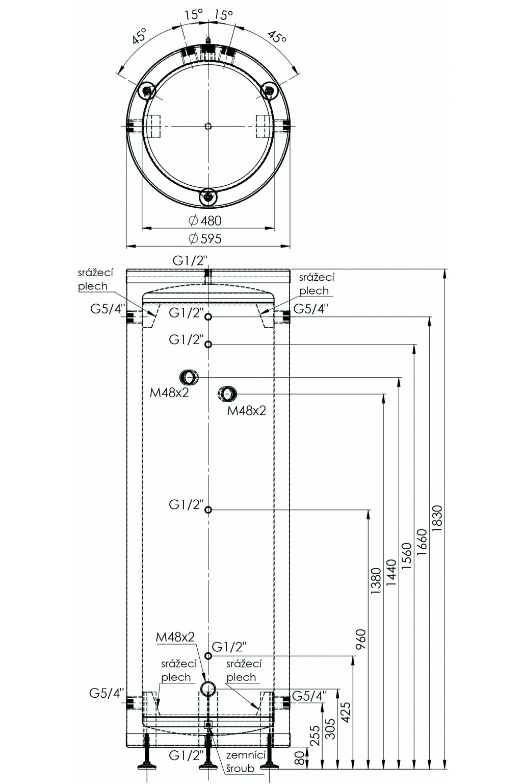 UPOZORNĚNÍ: Nádrž je dodávána bez zátek hrdel (3 ks) pro topné těleso, zátku s těsněním je nutné objednat zvlášť viz související produkty na této stránce.