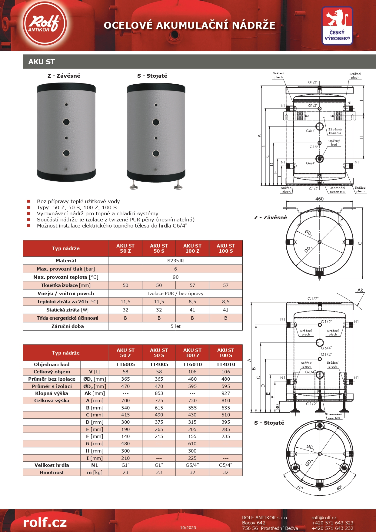 Rolf AKU ST 50 S ocelová akumulační nádrž stacionární 114005