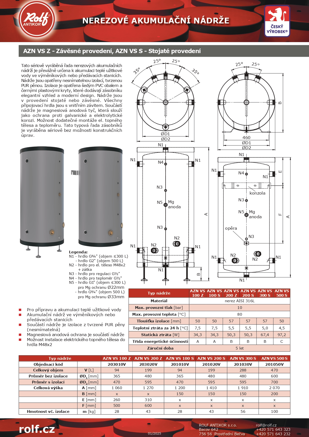 Rolf AZN VS 200 S nerezová akumulační nádrž pro TUV stacionární 201020V