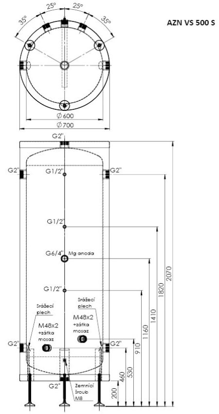 - Provedení nádrže stojaté svislé - součástí stavitelné výkyvné nohy (3ks)
