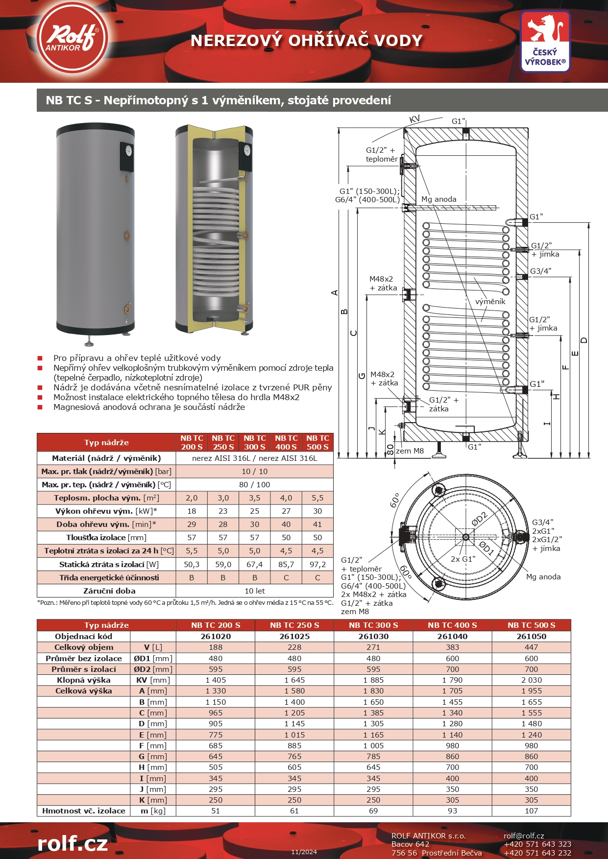 - Záruční doba na těsnost nádoby a trubkových výměníku 10 let