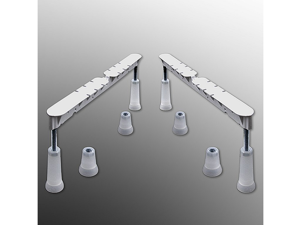 Nastavitelné vanové nohy EXCLUSIVEVanové nohy EXCLUSIVE vám značně ulehčí a urychlí práci. Jsou nastavitelné v rozmezí 12-15 cm, a díky tomu lze vyrovnat drobné stavební nepřesnosti. Vaše vana tak bude stát hezky v rovině, a to i bez úprav nerovné podlahy.