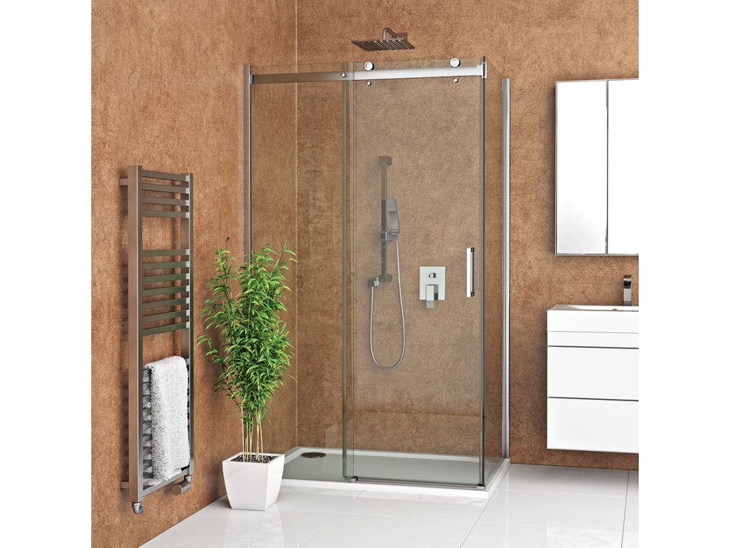 Sprchový kout doporučujeme instalovat na obdélníkovou sprchovou vaničku. Pro impozantní rozměr koutu doporučujeme vaničky WALK IN a FLAT KVADRO dlouhý obdélník.