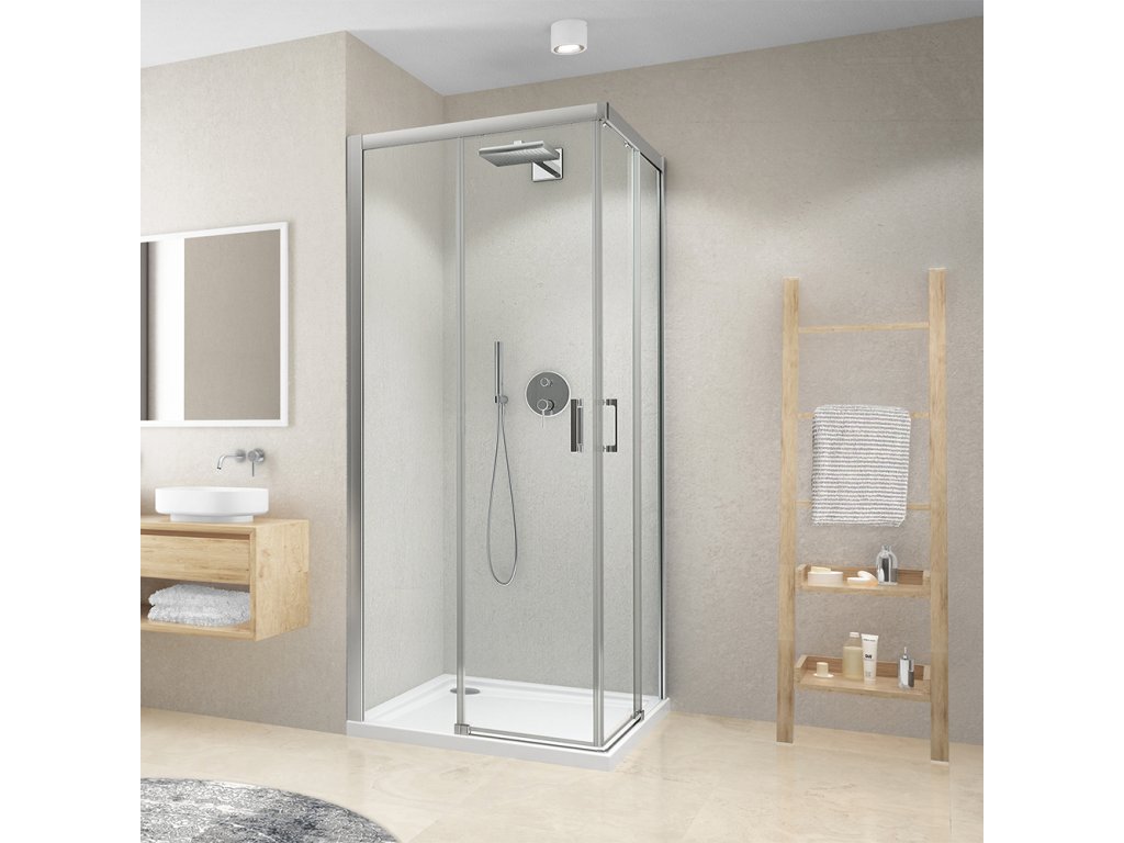 Výplň bezpečnostních skel nabízíme v :nadčasovém transparentním (čirém) provedení. Elegantní vzhled sprchového koutu podtrhuje designové madlo. :Dveře disponují precizním magnetickým těsněním mezi dveřmi a :profilem. Také těsnící silikonový praporek na spodní části dveří zabraňuje úniku vody. Díky těmto těsnícím komponentům už po sprchování nebude potopa.