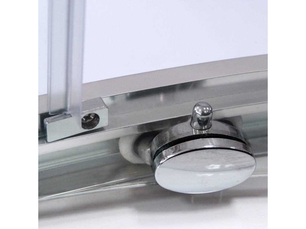 Dveře můžete odklopit velmi jednoduše. Jak můžete vidět na obrázku, na pojezdech se nachází stříbrný "čudlík". Čudlík ztlačte směrem dolů a následně dveře už jen odklopíte od lišty. Je nutné oba dva čudlíky na obou pojezdech ztlačit najednou, abyste sklo mohli bez problému odklopit. Dveře se však dají vyklopit pouze v dolní části, v horní části zůstávají stále připevněné, což zajišťuje, že na vás dveře nespadnou a nezpůsobí žádný úraz. Po vyčištění pojezdy jen nacvaknete zpět do lišty.