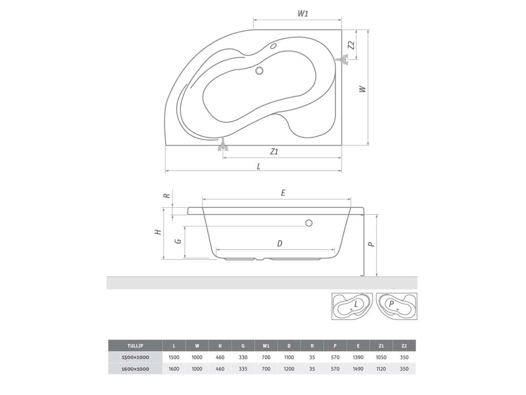 Roth panel čelní k vaně Tullip 160 x 57 cm levá bílá 5159002