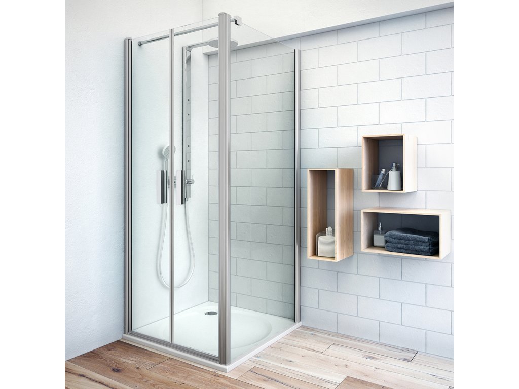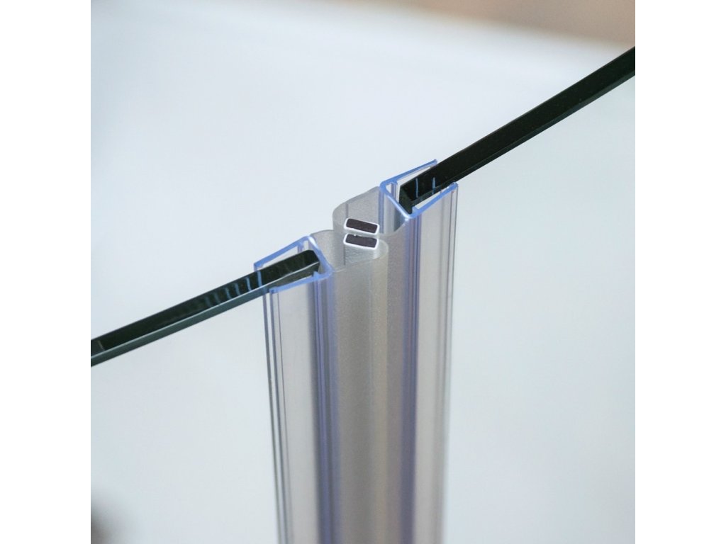 Otočný profil Brillant s vačkovým systémem otevíráníJe třeba zmínit velmi praktické otočné profily, které umožnují oboustranné otevírání sprchových dveří. Výhodou je také precizní magnetické těsnění, které kombinuje dvě tvrdosti PVC materiálů. Díky tomuto se také zvýšilo těsnění mezi dveřmi a prahem. Boční stěna je uchycena teleskopickou vzpěrou, která je druhou stranou přichycena do zdi a tím je zajištěna skvělá stabilita.