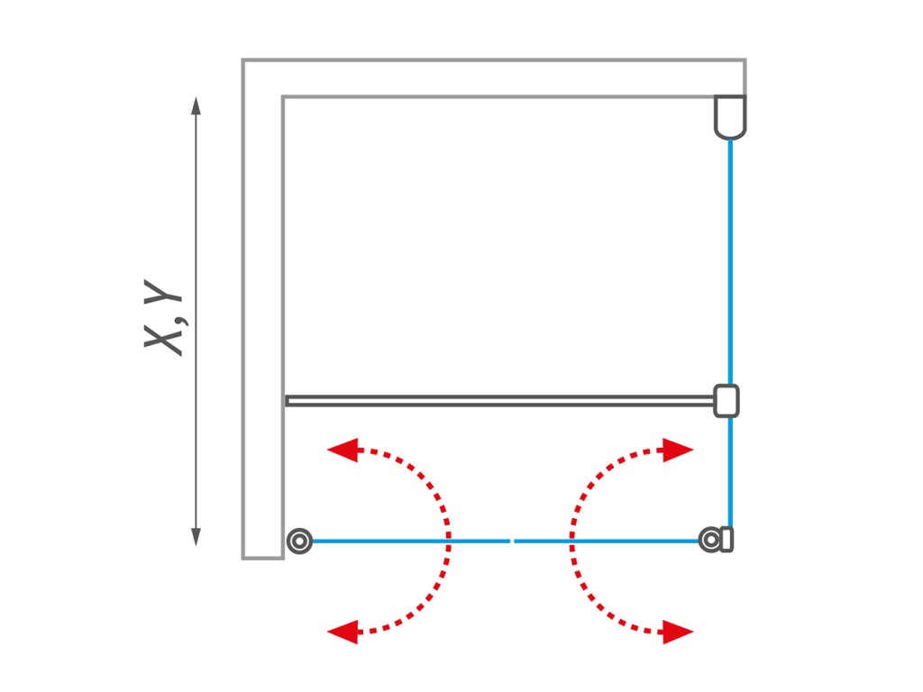 Nákres TCB+TCN1Toto je správný dotaz. TCB+TCN1 jsou jednokřídlé dveře v kombinaci s boční stěnou, které se dají otevírat jak dovnitř, tak i ven. Šířka vstupního otvoru se pohybuje v rozmezí neuvěřitelných 680 mm - 1080 mm (celkem 5 variant)! To vám poskytne úžasný zážitek z velké sprchy.