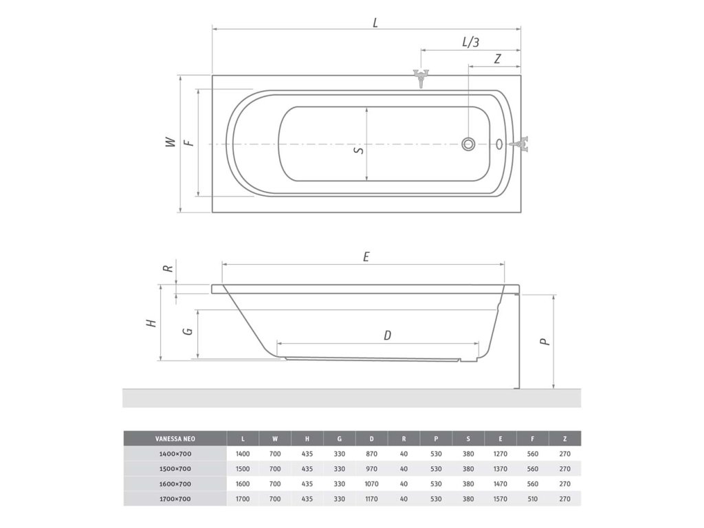 Roth VANESSA NEO boční univerzální panel 700 x 530 bílá 8930002