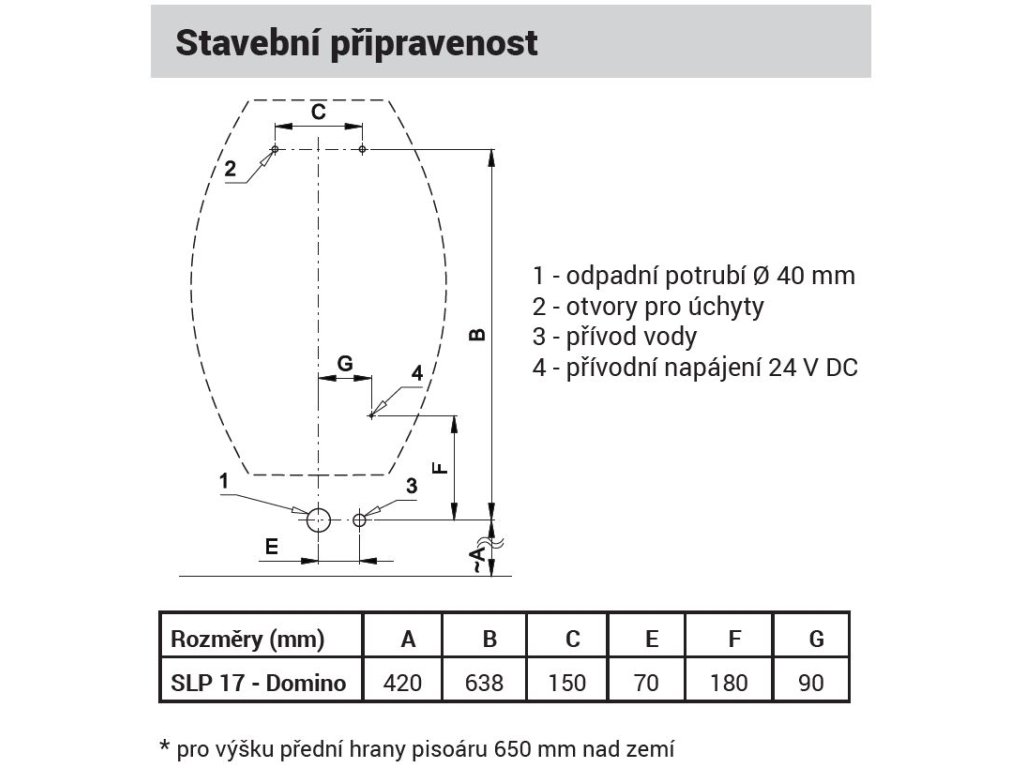 Pisoár Domino s infračerveným splachovačem s elektronikou ALS, 6 V.