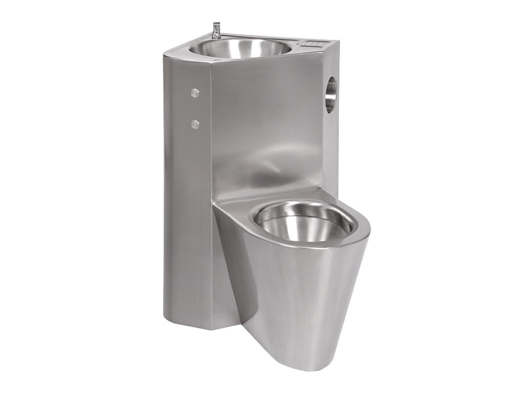 Nerezový kombinovaný set wc a umyvadla Sanela SLWN 08ZPP s antivandalovým provedení a s umyvadlovou armaturou a otvorem pro toaletní papír.