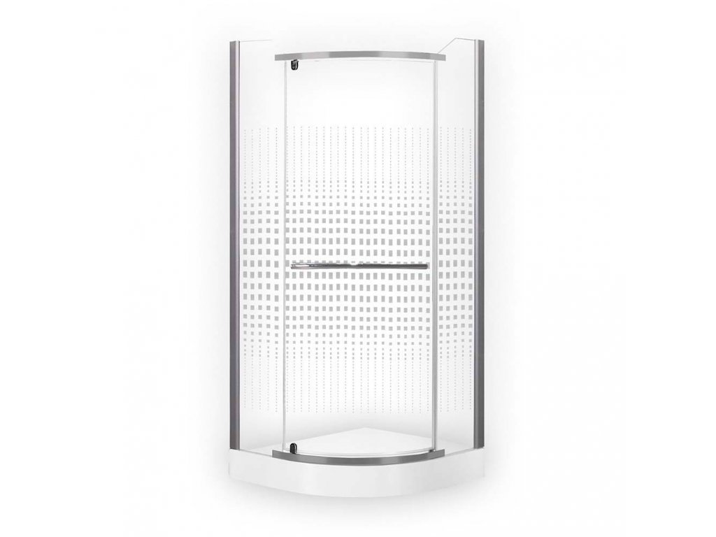 Stabilní nosné hliníkové profily jsou vyráběny v provedení Stříbro (Elox). Výplň skel nabízíme s designovým postiskem v podobě drobných čtverečků, který bude slušet každé koupelně. Obzvlášť té vaší. Výhodou sprchového koutu je praktické dlouhé madlo z chromovaného plechu v povrchové úpravě Chrom, které můžete použít např. na pověšení ručníku.