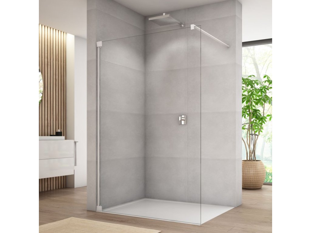 Walk-in zástěna CADURA WHITE LINE – pevná stěna samostatná s vyrovnávacím profilem je aktuálním trendem pro moderní koupelny. 6mm bezpečnostní sklo je pokryto antiplakovou úpravou AQUAPERLE pro eliminaci vodního kamene na skle Walk-in zástěny. Dekor skla 87 - Screen. Celková výška včetně vodorovné vzpěry je 2024 mm. Walk-in zástěnu CAT4 lze použít samostatně nebo v kombinaci s boční stěnou CAT3. Všechny pohledové dílky jsou v matné bílé barvě.Doplňkové parametry