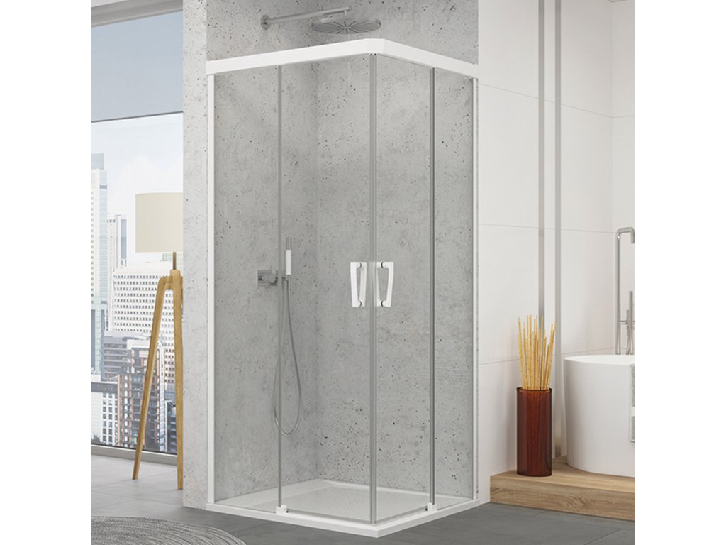 SanSwiss Cadura 80 cm dvoudílné posuvné dveře - bílá/sklo Screen CAE2D0800987