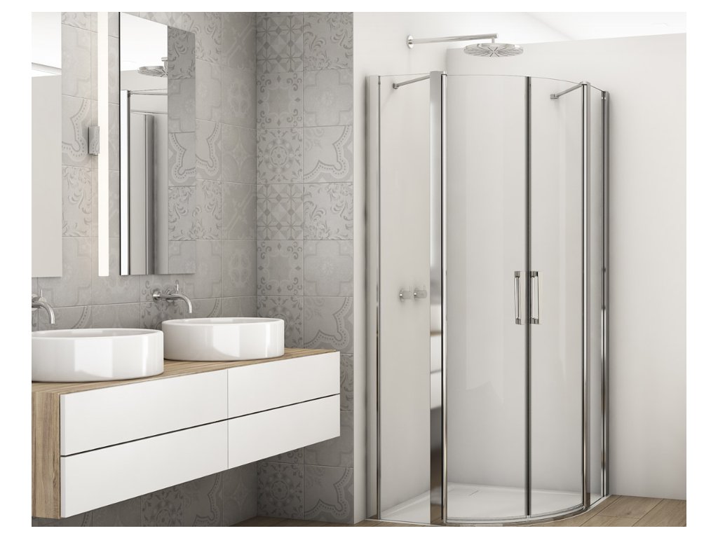 DIVERA od SanSwiss splňuje veškeré požadavky na moderní sprchový kout. 6mm bezpečnostní sklo s antiplakovou úpravou AQUAPERLE pro snadné čištění. Dekor skla 87 - Screen. Otvírání dveří ven i dovnitř. Magnetické těsnění. Součástí sprchové zástěny DIVERA jsou rohové vzpěry. Rádius 550 mm. SanSwiss dodává sprchový kout DIVERA ve 3 baleních. Ergonomická madla pro komfortní otvírání a zavírání dveří. Praktický vyrovnávací profil zajišťuje komfortní vyrovnání zdi. Optimální těsnost zajistí standardně dodávaná prahová lišta o šířce 15 mm. Jedná se o nerovnostranné provedení. Čtvrtkruh s dvoukřídlými dveřmi D22ERB je možné kombinovat s boční stěnou D22F1 (U-montáž) - v případě U-montáže je nutné objednat rohovou vzpěru D22EV1.10.500 a fixní díl k rohové vzpěře D22FPG.10. Sprchové dveře lze také kombinovat se dvěma pevnými stěnami D22FF - pro velkorysou šířku.Doplňkové parametry