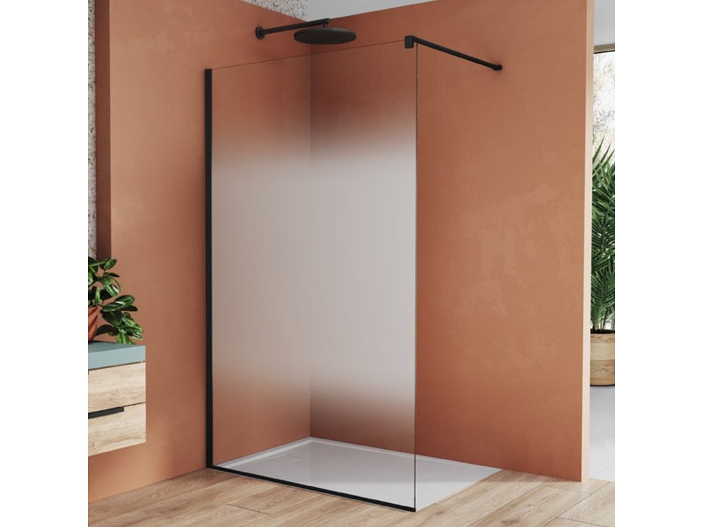 Walk-in zástěna s vyrovnávacím profilem EASY BLACK LINE od SanSwiss v atraktivním dekoru skla Shade - bílý sítotisk na přední straně skla pro zajištění intimity. 8mm bezpečnostní sklo je na vnitřní straně skla vybaveno antiplakovou úpravou Aquaperle. Včetně vodorovné vzpěry 1250 mm. Celková výška včetně vodorovné vzpěry 2017 mm. Zástěnu lze namontovat vpravo i vlevo. Včetně podlahové lišty v matné černé barvě. SanSwiss nabízí kromě standardně dodávané stabilizační vzpěry i rohovou nebo stropní vzpěru (za příplatek). Záleží na Vašem přání i možnostech koupelny, kterému řešení dáte přednost. Zástěnu lze instalovat na vaničku i na dlažbu. Za příplatek lze zakoupit elegantní stojan s poličkami a držákem ručníku: KASW.06.1000 (2 poličky, 1 mýdlenka) nebo KASF.06.1000 (1 držák ručníku, 2 poličky, 1 mýdlenka). Ke stojanu je možné objednat i úložný box včetně krytu - KABC.06. Walk-in zástěnu EASY lze kombinovat s montážním setem BTE2 - krátká otočná stěna v 90° nebo s montážním setem BTE3 - krátká otočná stěna ve 180°, krátké otočné stěny částečně zamezí stříkání vody ze sprchovacího prostoru. Možná kombinace dvou Walk-in zástěn EASY pomocí spojovacího dílu VT90.06. Možná L-montáž - 2 Walk-in zástěny spojené spojovacím profilem WPE.06.2000.Doplňkové parametry