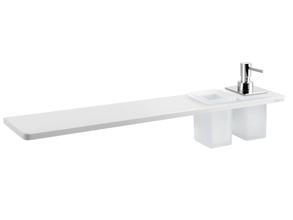 Sapho Abeline koupelnová police sklenka a dávkovač chrom 600 mm rockstone bílá matná AE602-0101-02