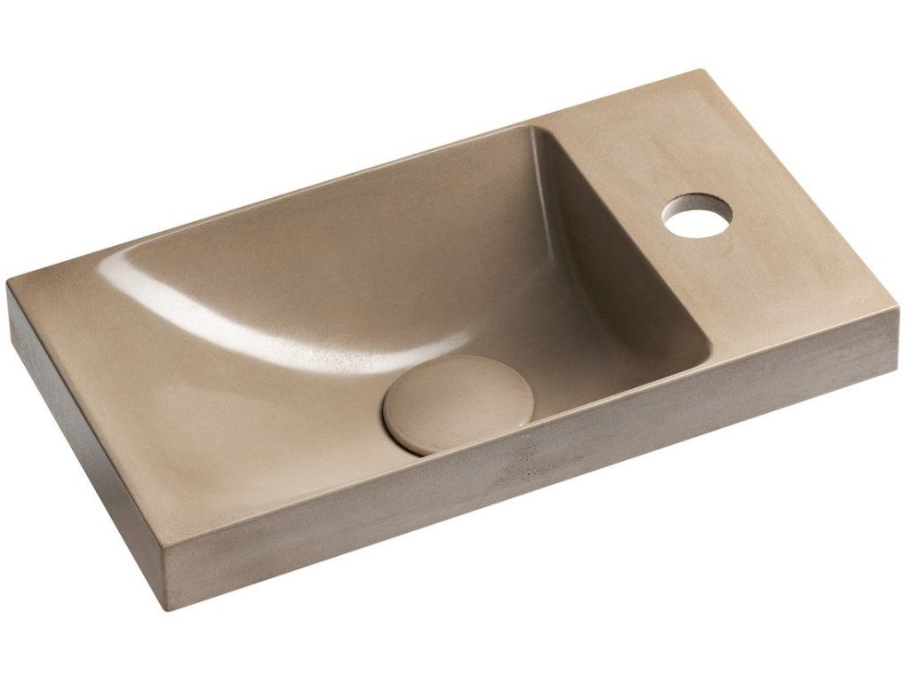 Sapho Agos betonové umývátko 40 x 22 cm s otvorem pro baterii bez přepadu levé/pravé písková lesk AS40014
