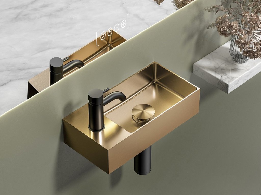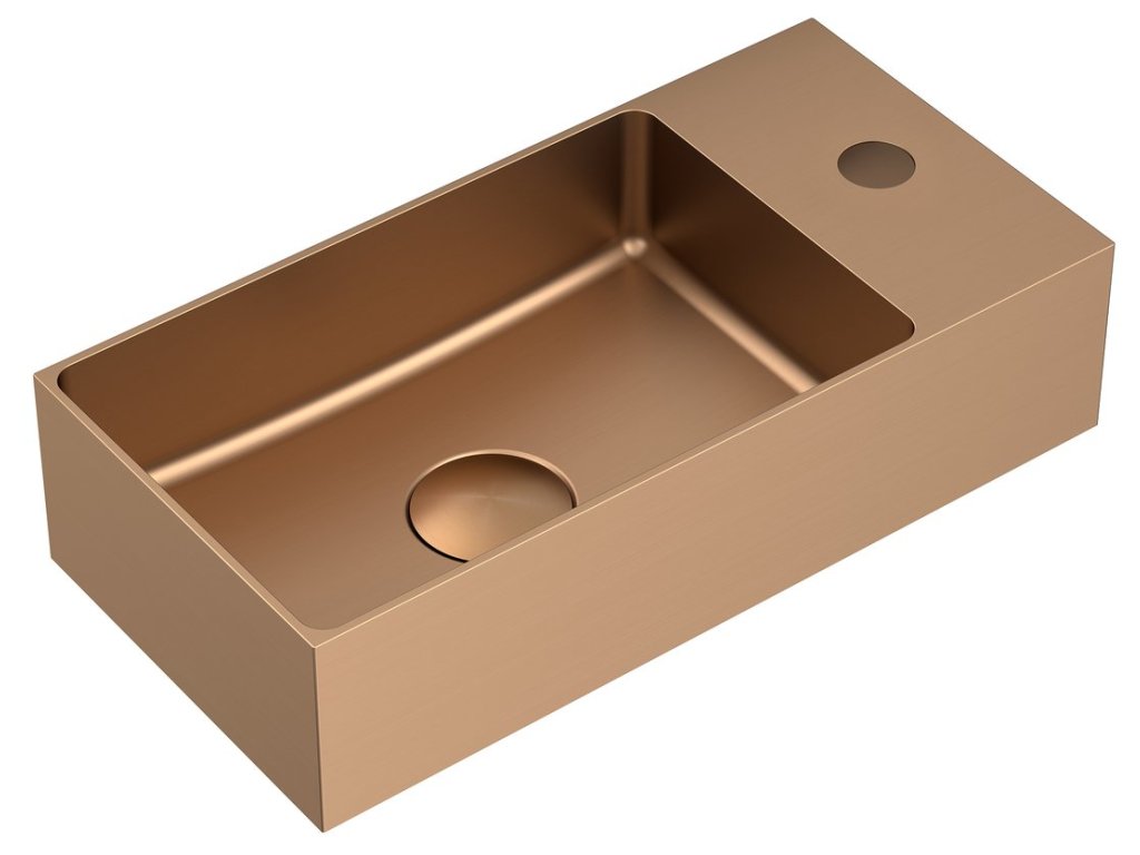 Sapho Aurum nerezové umývátko 36,5 x 18 cm s výpustí a otvorem pro baterii levá pravá měď matná AU304