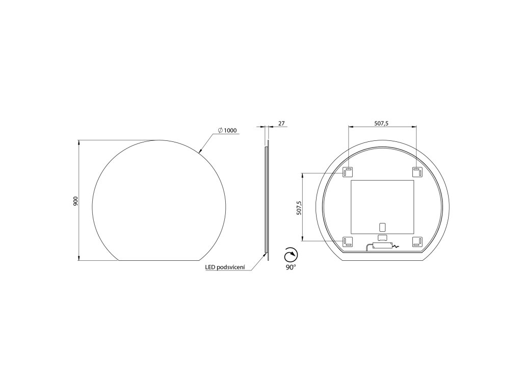 Sapho Dara Cut zrcadlo 100 x 90 cm LED podsvícení topná fólie 34900CI