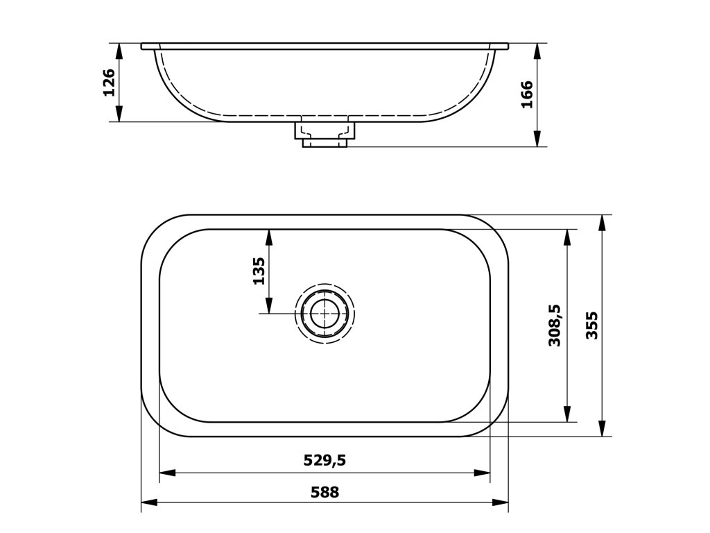 - Vnitřní rozměr mycí části (ŠxVxH) 529x116x308 mm.