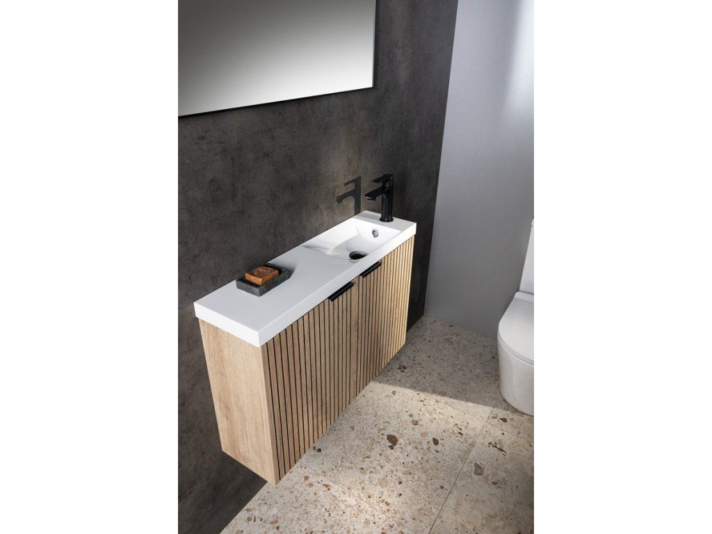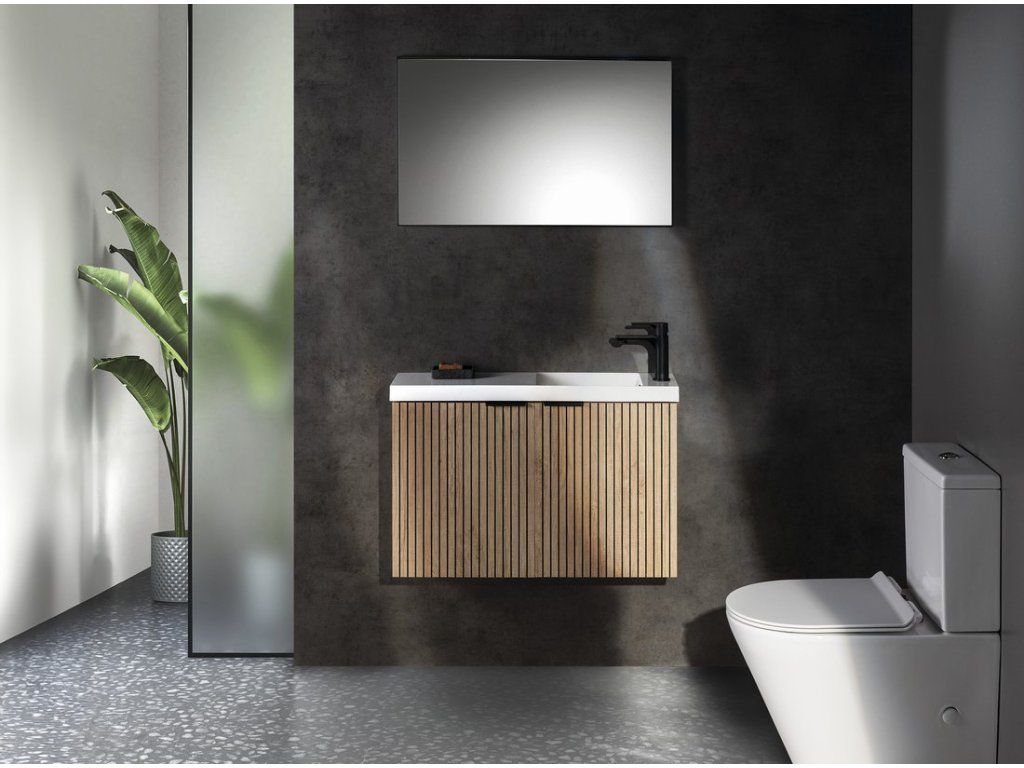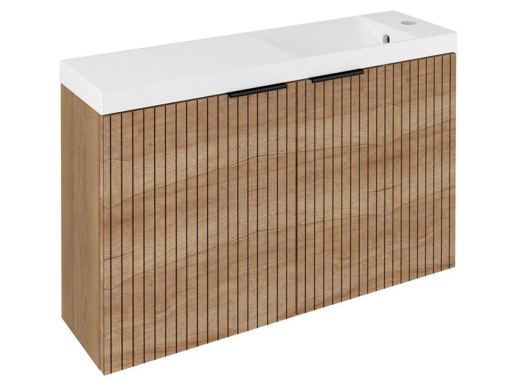 Sapho Latus X koupelnová skříňka s umyvadlem 80 x 54,5 x 22 cm s odkládací plochou pravá dub alabama strip hnědá LT110-SET08