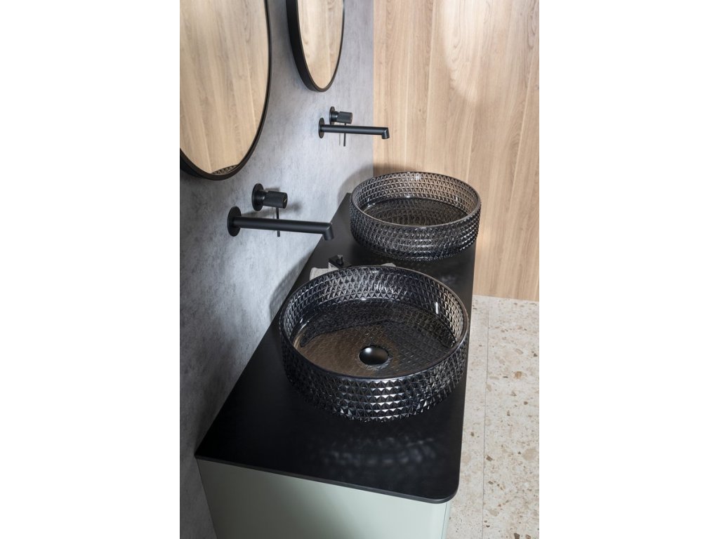 Sapho MARAGUA skleněné gravírované umyvadlo, průměr 39,5 cm, černá TY214