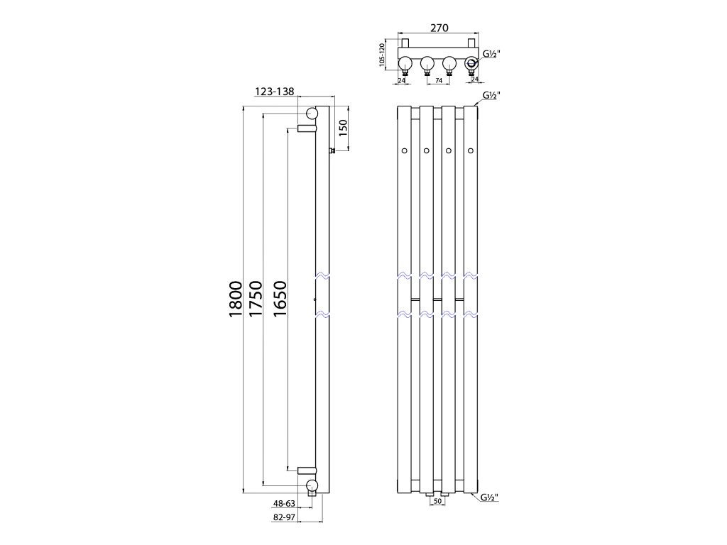 Sapho Pilon otopné těleso 270 x 1800 mm se čtyřmi háčky pro ručník chrom IZ120T