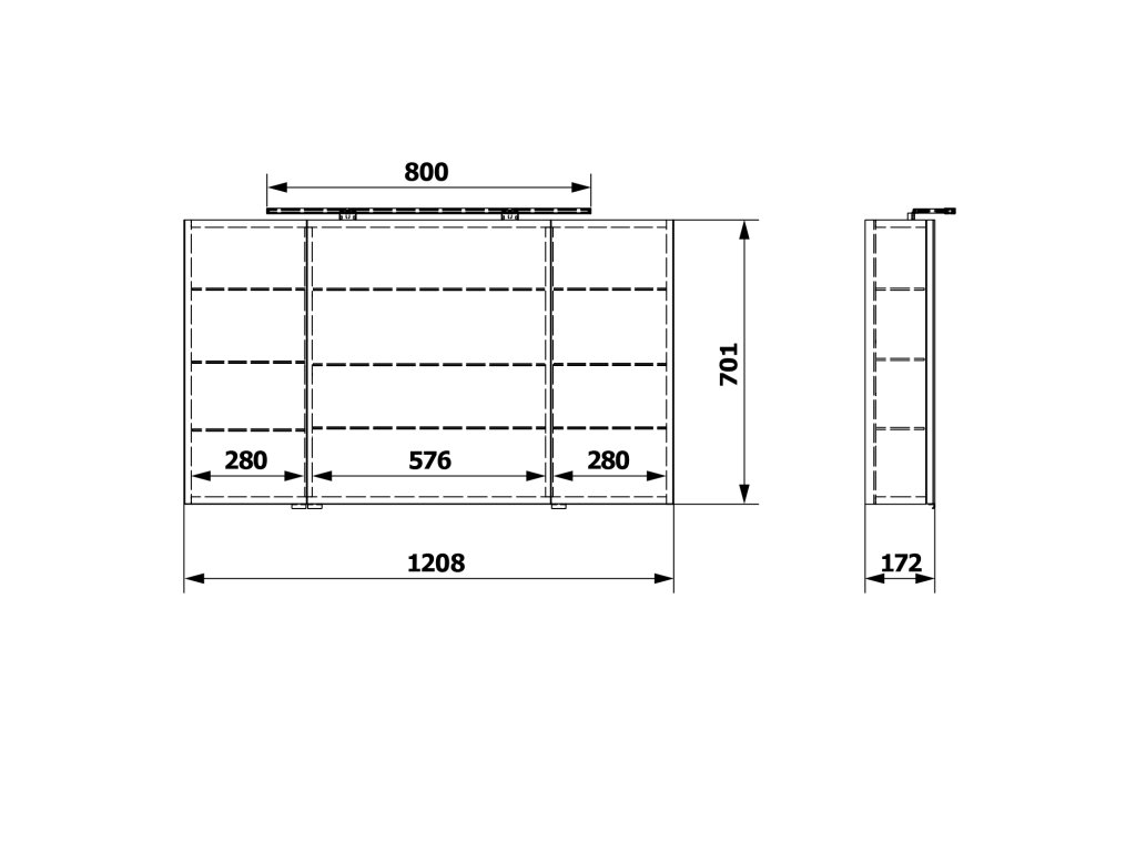 - 3x dvířka se zrcadlem (30 + 60 + 30 cm)