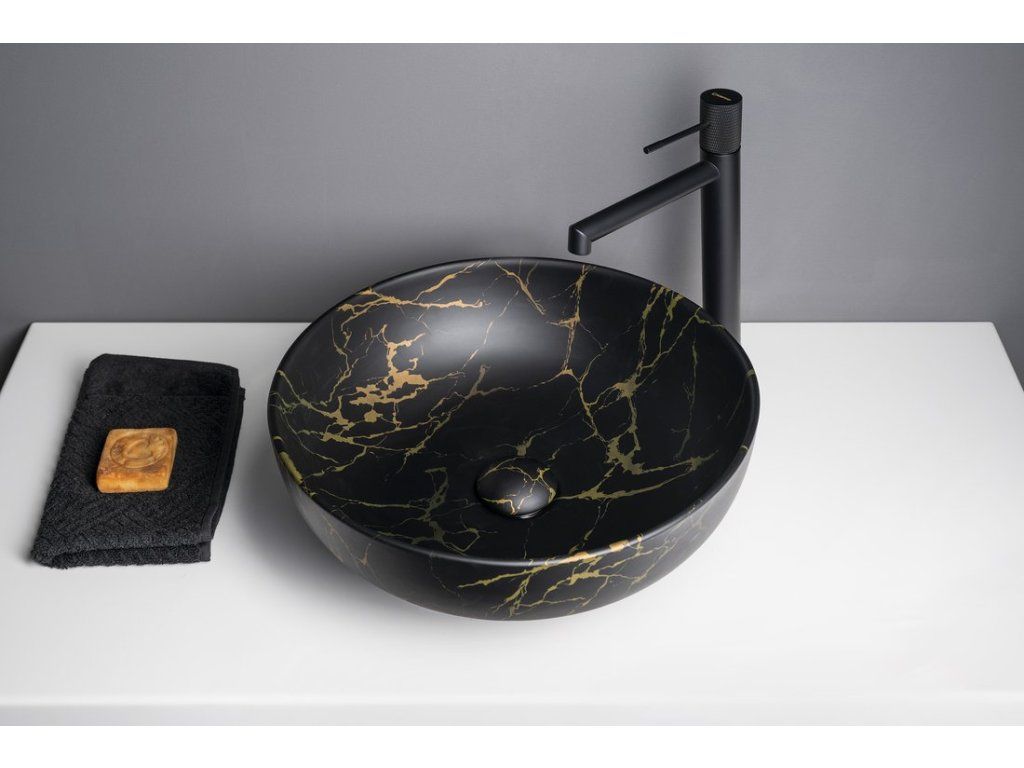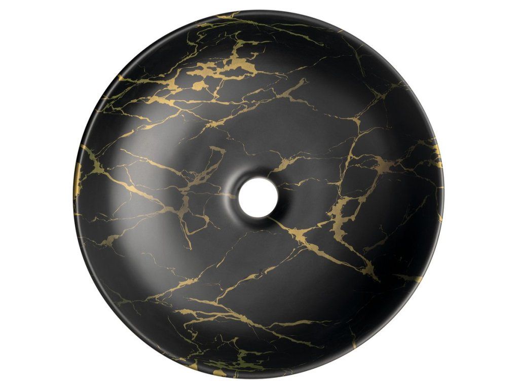 Sapho Rondane umyvadlo na desku 41 cm bez otvoru pro baterii bez přepadu keramické portoro marmor černá AR435PT