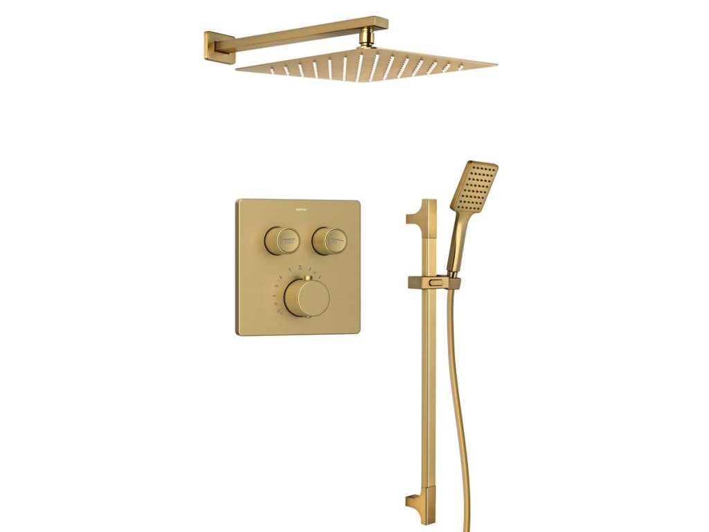 Sapho SMART SELECT podomítkový sprchový set s termostatickou baterií 2 výstupy posuvný držák sprchy zlato mat RP042GB-02