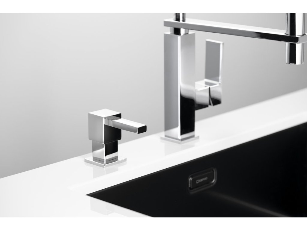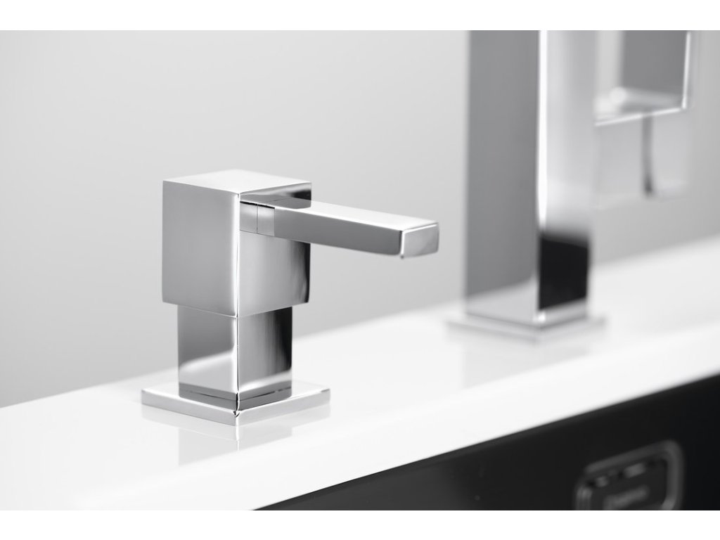Zápustný dávkovač mýdla a saponátu s možností instalace do umyvadla místo stojánkové baterie, nebo do desky vedle umyvadla či dřezu.