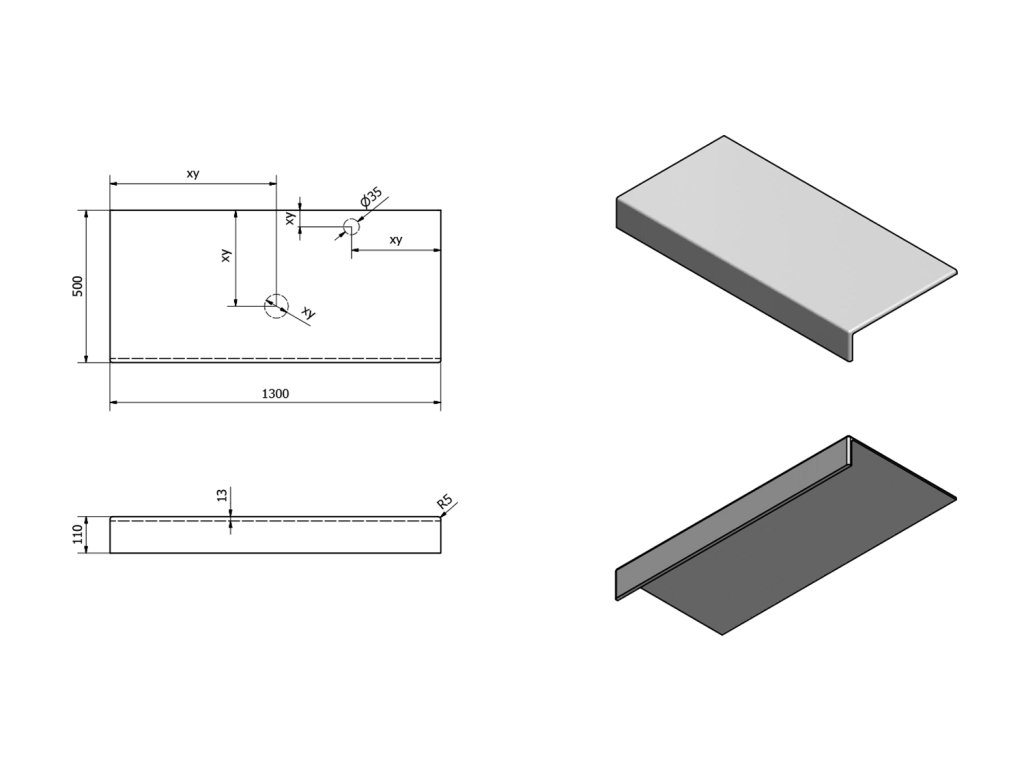 - Možnost dodání s otvory pro baterii a odpad dle výkresu (lze vrtat i v místě instalace)
