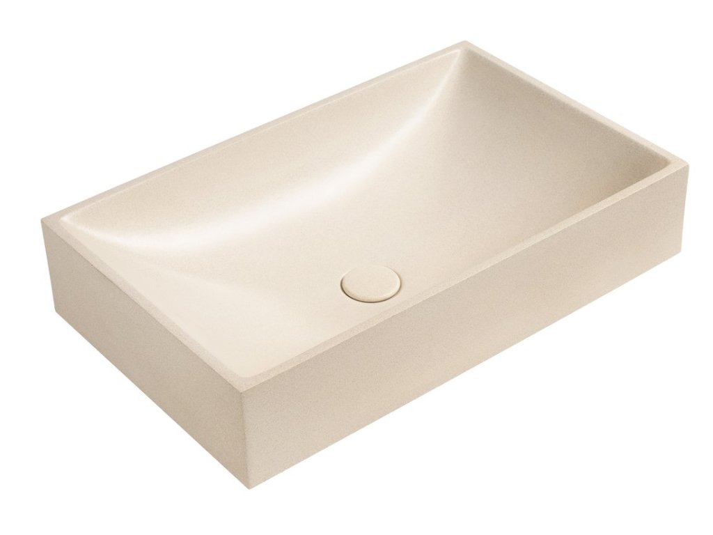 Sapho TARANT betonové umyvadlo včetně výpusti 58 x 36 cm bílý pískovec AR472