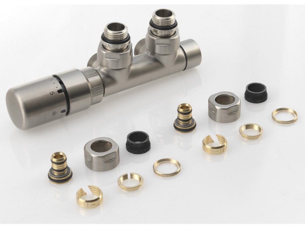 V případě ústředního vytápění je důležitý výběr připojovací sady ventilů. Na výběr je použití ručního ventilu nebo ventilu s termostatickou hlavicí.