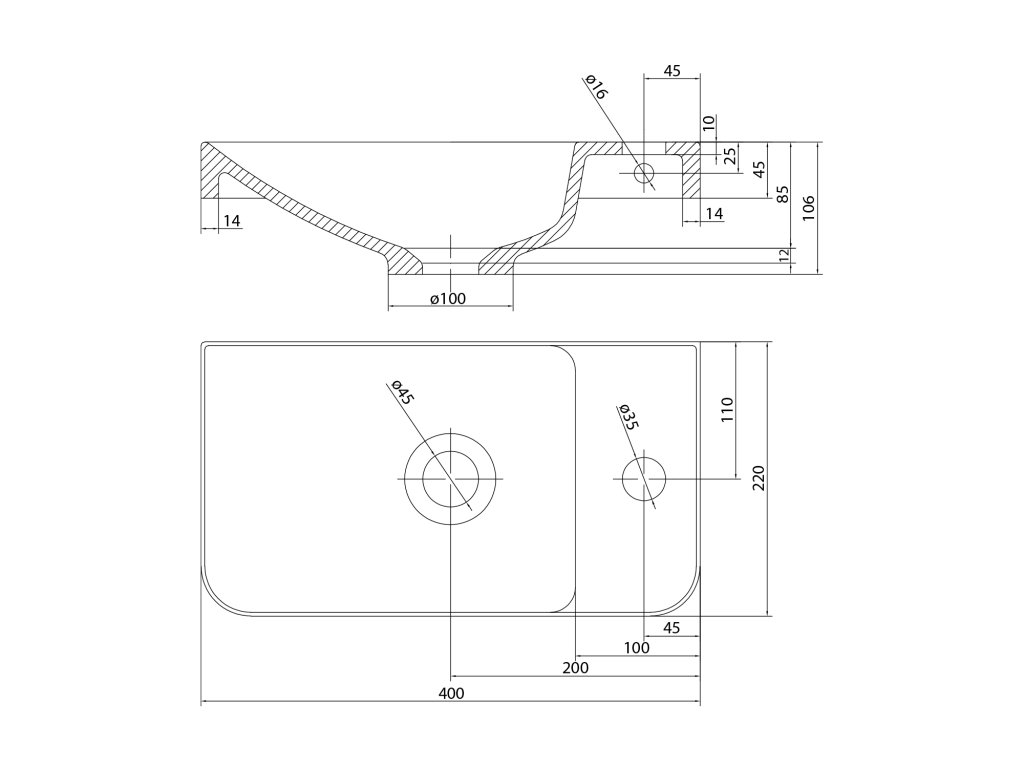 Sapho Zorba umývátko 40 x 22 cm otvor pro baterii vpravo litý mramor bílá ZB402