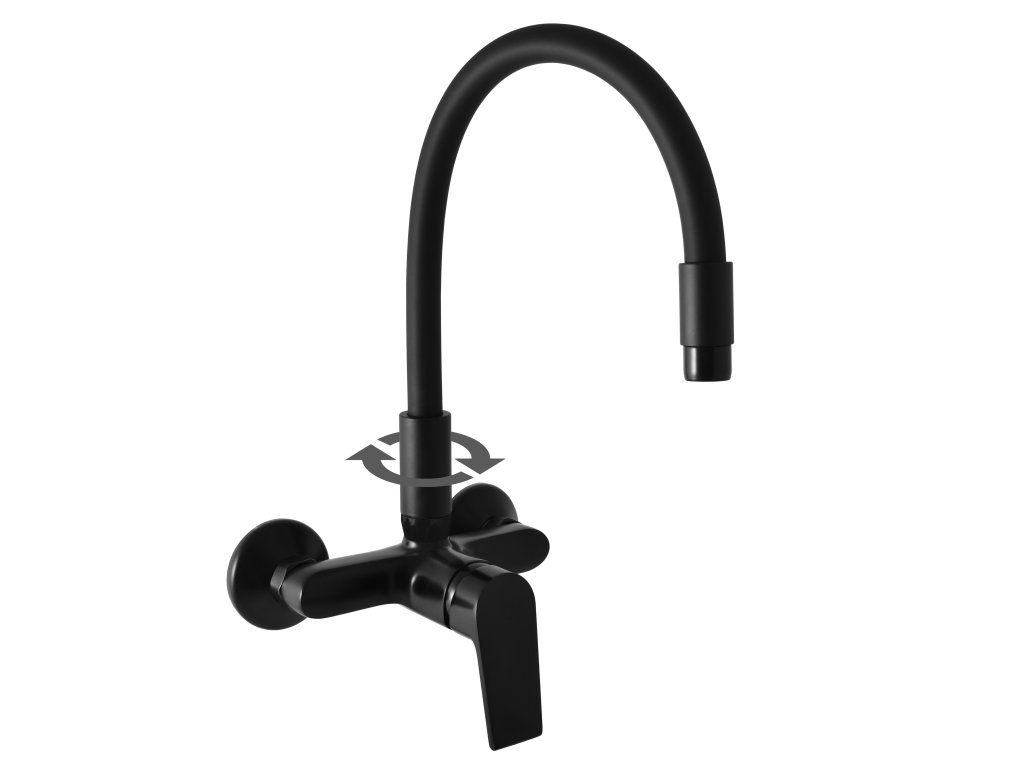 Vodovodní baterie dřezová nástěnná s :flexibilním otočným ramínkem.