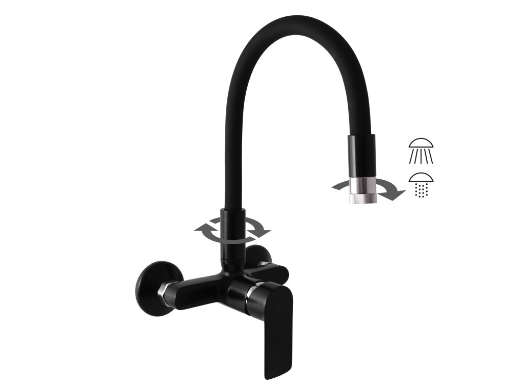 Vodovodní baterie dřezová nástěnná s :flexibilním otočným ramínkem.