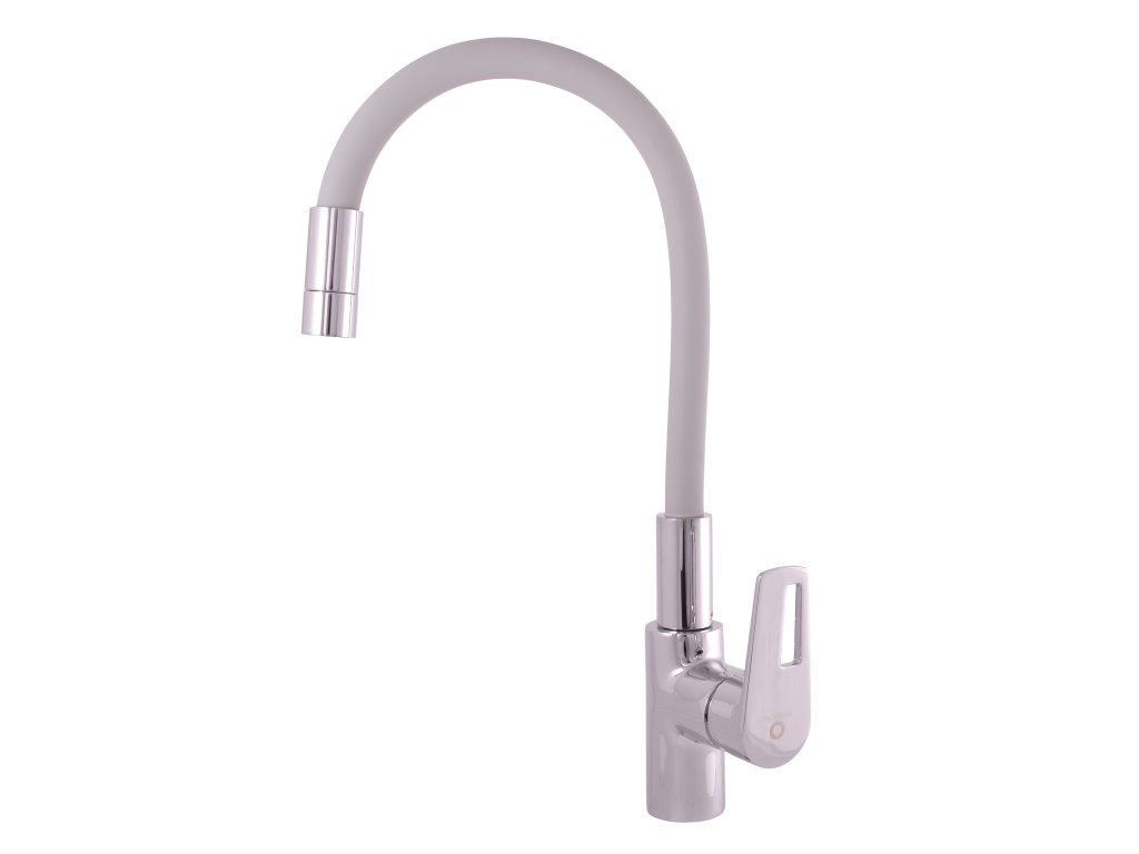 Vodovodní baterie dřezová stojánková s flexibilním otočným ramínkem.