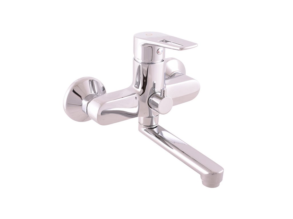 Vodovodní baterie vanová nástěnná s plochým otočným ramínkem.