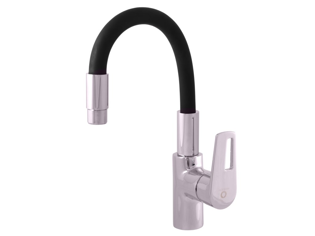 Vodovodní baterie umyvadlová stojánková s :flexibilním otočným ramínkem.