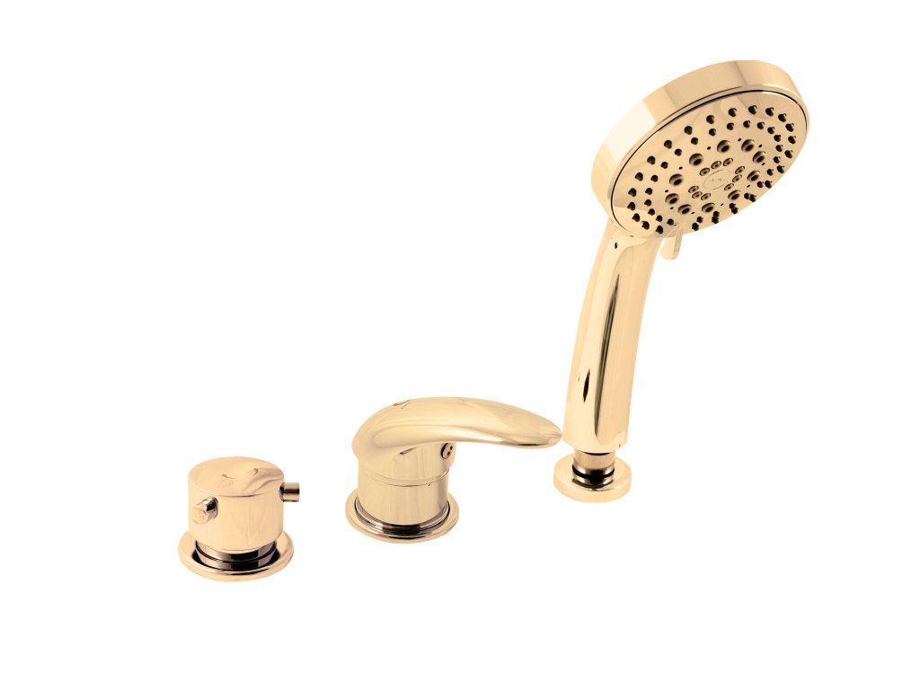 Vodovodní baterie vanová stojánková tříotvorová s keramickým přepínačem MD0448, samonavíjecí sprchou a 2m hadicí, pro napouštění přes přepad sifonu.