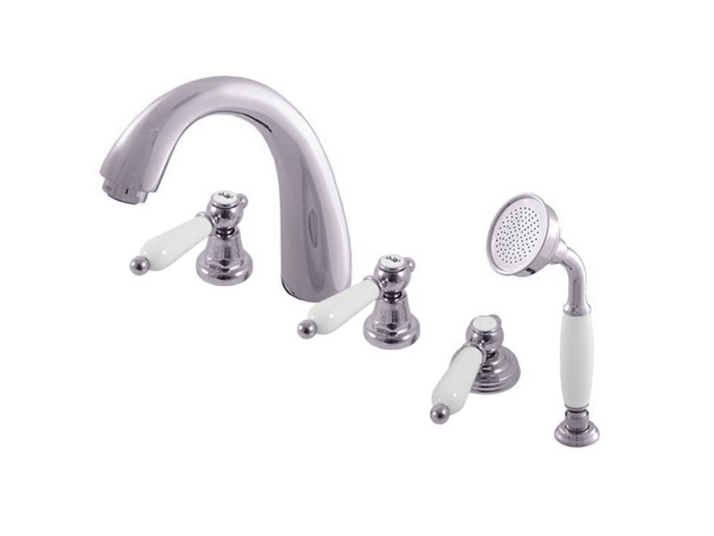 Vodovodní baterie vanová stojánková pětiotvorová s keramickým přepínačem, samonavíjecí sprchou a 2 m hadicí.