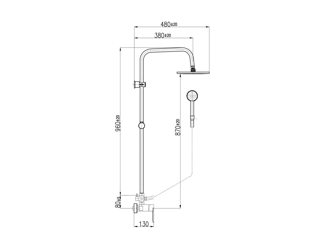 Vodovodní baterie sprchová NIL s :hlavovou a :ruční sprchou se skládá z: