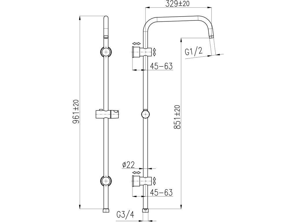 Sprchová tyč k :baterii s :hlavovou a :ruční sprchou.