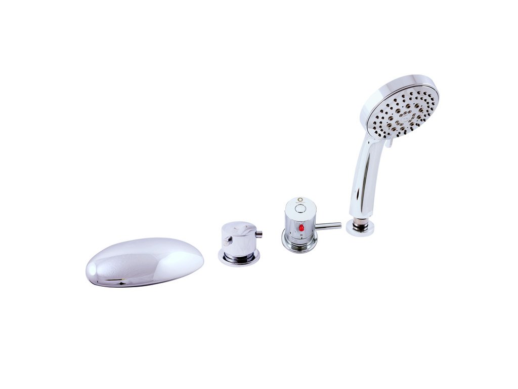 Vodovodní baterie vanová stojánková termostatická čtyřotvorová skeramickým přepínačem, samonavíjecí 2m hadicí asprchou.