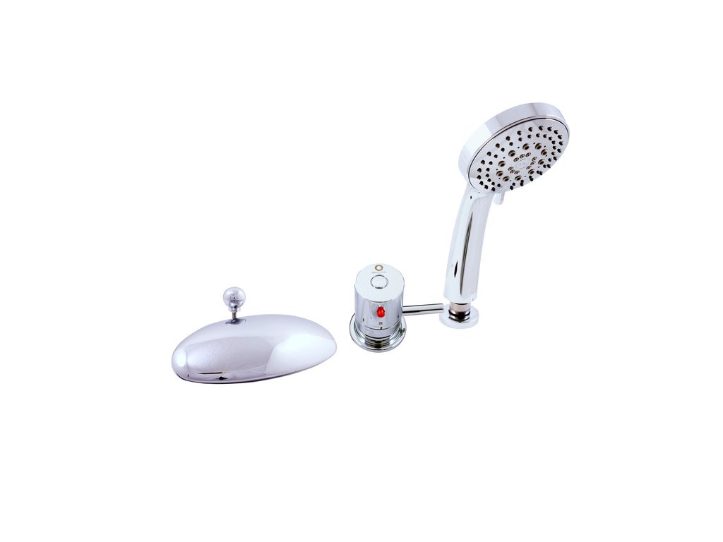 Vodovodní baterie vanová stojánková termostatická tříotvorová spřepínačem ve výtoku, samonavíjecí 2m hadicí asprchou.