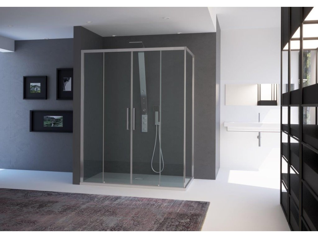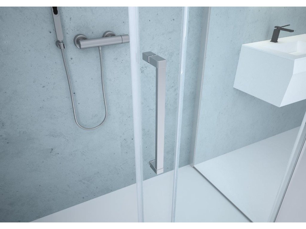 Bezbariérové posuvné čtyřdílné skleněné stěny URBAN ESSENCE N2FS řeší atypické vstupy v prostorných koupelnách. Vytváří velmi luxusní dojem, který je podpořen výrazným chromovým madlem. Lze dokoupit jednu nebo dvě boční pevné stěny ESSENCE F1, pomocí kterých poskládáte praktický sprchový kout. Pevná stěna ESSENCE F1 je dodávána v univerzálním levém / pravém provedení.